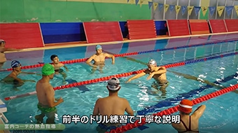 個人では練習が困難なスイムを経験豊富なコーチの指導の元、貸し切りプールにて練習会を実施しています。
